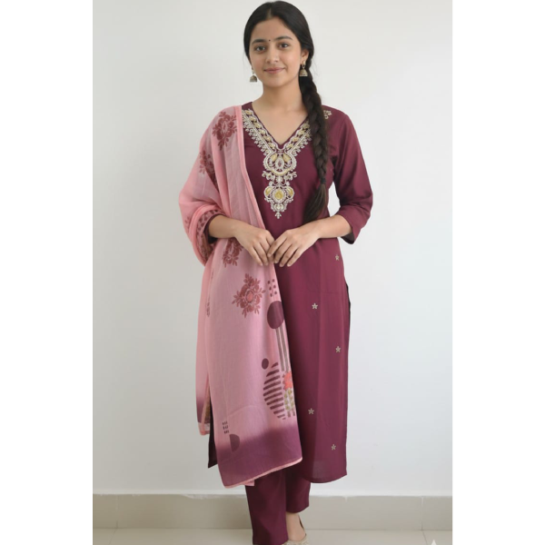 Gorgeous Rayon Party Wear Chudithar (3-Piece) with matching dupatta and bottom. Flowy, comfortable, and beautifully detailed.